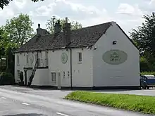 Diesel railbus services were introduced by British Railways Western Region on the Tetbury branch line on 2 February 1959, and on the same day two halts were opened on that line, at Church's Hill and at Trouble House.[1][2] It was built to serve a 17th-century public house, the Trouble House Inn, which had originally called the Waggon and Horses, but was later renamed because it had been built on flood-prone land known as "The Troubles" and also for the difficulties which beset a series of innkeepers in the 18th and 19th centuries, including being taken by a press gang.[3] It was the only station in England built specifically to serve a pub, although Berney Arms station in Norfolk has much the same function.