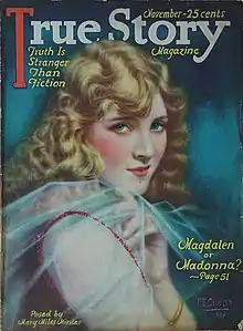 With a circulation of 300,000 by 1923, the trend-setting publication remained a huge success through the 1920s and was a key title in Bernarr Macfadden's publishing empire of Physical Culture, True Detective, True Romances, Dream World, True Ghost Stories, Photoplay and the tabloid New York Graphic. It sprang from Physical Culture, stemming from the many letters written to the magazine by women about their experiences.[2] By 1929, the circulation of True Story was nearly two million.[3][4]