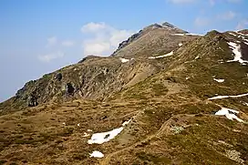 Tumba (Greek: Τούμπα, Bulgarian and Macedonian: Тумба) is a peak in the Belasica mountains in the region of Macedonia. The peak, 1,880 metres (6,170 ft) in height, lies on Belasica's main ridge, west of Lozen Peak and east of Sechena Skala Peak. A dome-shaped mountain with steep southern and northern slopes, Tumba is covered with low subalpine vegetation and is made of metamorphic rock. Tumba is notable as the point where the national borders of Bulgaria, Greece and North Macedonia meet (tripoint). It is one of the southwesternmost point of Bulgaria and one of the southeasternmost point of North Macedonia.