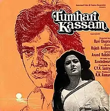 Tumhari Kasam (transl.Promise on You) is a 1978 Indian Hindi-language drama film, produced by C.V.K. Sastry on Associated Films & Finance Corporation banner and directed by Ravi Chopra. The film stars Jeetendra and Moushmi Chatterjee, with music composed by Rajesh Roshan.