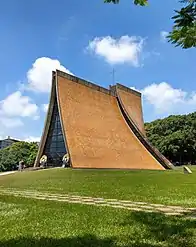 On the grounds, the Luce Memorial Chapel (designed by architects Chen Chi-kwan and I. M. Pei) is a local landmark. The logo of the university contains a cross in reference to the statement in the founding documents that it was "founded in the love of Jesus," and the three linked circles refer to the Holy Trinity as well as the motto, "Truth, Faith, Deeds".[1] The university shares its name with Tokai University in Japan. The two universities have since entered a partnership agreement.