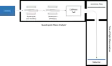 Tandem mass spectrometry (Tandem MS or MS/MS) uses two mass analyzers in sequence to separate more complex mixtures of analytes. The advantage of tandem MS is that it can be much faster than other two-dimensional methods, with times ranging from milliseconds to seconds.[5] Because there is no dilution with solvents in MS, there is less probability of interference, so tandem MS can be more sensitive and have a higher signal-to-noise ratio compared to other two-dimensional methods. The main disadvantage associated with tandem MS is the high cost of the instrumentation needed. Prices can range from $500,000 to over $1 million.[6] Many form of tandem MS involve a mass selection step and a fragmentation step. The first mass analyzer can be programmed to only pass molecules of a specific mass-to-charge ratio. Then the second mass analyzer can fragment the molecule to determine its identity. This can be especially useful for separating molecules of the same mass (i.e. proteins of the same mass or molecular isomers). Different types of mass analyzers can be coupled to achieve varying effects. One example would be a TOF-Quadrupole system. Ions can be sequentially fragmented and/or analyzed in a quadrupole as they leave the TOF in order of increasing m/z. Another prevalent tandem mass spectrometer is the quadrupole-quadrupole-quadrupole (Q-Q-Q) analyzer. The first quadrupole separates by mass, collisions take place in the second quadrupole, and the fragments are separated by mass in the third quadrupole.