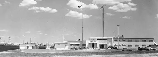 The radio station was built on land which before World War II been a part of Camp O'Donnell a U.S. Military reservation used as a bombing and artillery range. At the onset of World War II, the Philippine Armed Forces were brought under the jurisdiction of the U.S. Armed Forces, and the eastern portion of Camp O'Donnell was designated as a Philippine Army camp.[1] After the surrender of the U.S. and Philippine forces at Bataan in early 1942, the army camp became an impromptu Japanese prisoner of war camp, and, in April 1942, was the final destination of the infamous Bataan Death March.[2] From April 1942 until June 1942, approximately 9,000 U.S. military personnel, and 50,000 Filipino soldiers were interned there;[3] during that time, over 1,500 of the Americans and 20,000 of the Filipinos died at the camp.[4][5] Eventually, the death toll would climb to 1,565 Americans and 26,000 Filipinos.[6][7] The cause of the deaths ranged from malnutrition, dysentery, malaria, lack of medical care, and execution.[8] The Japanese Army segregated the Americans on the north side of the camp, and Filipinos on the south side. A large concrete cross monument marked the site of a cemetery for the Americans who died there, and a similar monument marked the Filipino graves. The American cemetery memorial marker has since been relocated to the P.O.W. museum at Andersonville, Georgia. Beginning in 1945, the remains of the fallen American prisoners were reinterred at Fort William McKinley, near Manila, or, at the request of next of kin, in cemeteries in the United States.[9]