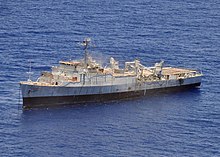 Ex-Monticello was withdrawn from the National Defense Reserve Fleet, Suisun Bay, Benicia, California on 27 June 2010, to be towed to Hawaii for sinking, in July 2010, as part of the RIMPAC 2010 exercise.[3] She was sunk as a target in the Pacific Ocean 70 nautical miles (81 mi; 130 km) off Kauai, Hawaii, on 14 July 2010 by aircraft of the U.S. Navy's Patrol Squadron 4 (VP-4) and Patrol Squadron 40 (VP-40).[4]