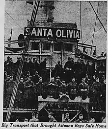 The return of U.S. troops aboard Santa Olivia was front page news in the Altoona Tribune, 15 May 1919