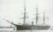 Almost three months later, on 30 January 1888, Trenton sailed for the Pacific. The voyage took her more than a year to complete, for she had to steam around Cape Horn at the southern end of South America. After stops at Panama and Tahiti, the warship reached Apia, Samoa, on 10 March 1889 and joined other units of the Pacific Squadron. Six days later, on 16 March 1889, a cyclone struck Apia and the thirteen ships anchored in her harbor.[2]