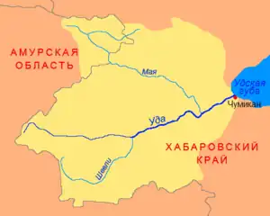 The Uda (Russian: У́да,[1][2] Chinese: 乌第河) is a river in Khabarovsk Krai, in the Russian Far East. It is 457 kilometres (284 mi) long, and has a drainage basin of 61,300 square kilometres (23,700 sq mi).[3]