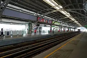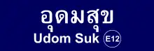 Udom Suk station (Thai: สถานีอุดมสุข) is a BTS skytrain station, on the Sukhumvit Line in Bang Na District, Bangkok, Thailand. The station is located on Sukhumvit Road at Soi Udom Suk (Sukhumvit Soi 103), to the north of Bang Na intersection. It is a part of the 5.52 km skytrain extension from On Nut to Bearing station opened in 2011.