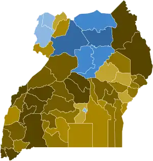 ![]() Results by district Museveni: 50–60% 60–70% 70–80% 80–90% >90% Besigye: 50–60% 70–80% 80–90% | ||||||||||||||||