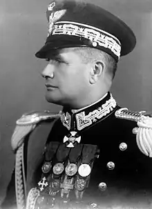 In 1925 he was appointed commander of the 31st Infantry Regiment "Siena", being promoted to colonel on 1 June 1926.[1][2] He was then transferred to Libya, where between 1927 and 1931 he was military commander of the southern Libyan territories (Fezzan).[2] After promotion to brigadier general on 1 January 1933, he was appointed chief of staff of the Royal Corps of Colonial Troops of Libya. After returning to Italy, in 1934 he was mobilization inspector at the 22nd Infantry Division "Cacciatori delle Alpi", in Perugia, and on 1 February 1935 he became commander of the XVII Infantry Brigade "Rubicone" in Ferrara.[1][2] After returning to Libya, on 1 May 1935 he assumed command of the local Royal Corps of Colonial Troops, and the post of military commander of Eastern Libya from 1 May 1935 to 10 April 1939.[1][2] He was promoted to major general on 1 July 1937, and was transferred to the service of the Ministry of Italian Africa.[1][2][4]