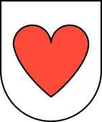 The Uissigheim family were a minor Frankish German noble family at Uissigheim, south-east of Wertheim. The family - Arnold von Uissigheim "King Armleder"[1] (executed 1336), his father and his brothers - were expelled from their land for ten years in 1333 as the result of a complaint by the Count of Wertheim in 1333.[2] Later members of the family are noted occasionally.[3] The family coat of arms consists of a red and silver checker pattern. [4]