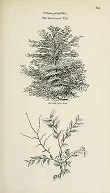 Loudon described the tree as "a handsome small tree, closely resembling U. campestris var. parvifolia" (i.e. the Chinese Elm Ulmus parvifolia Jacq.). An illustration appeared in volume 7 of Arboretum et Fruticetum Britannicum (1854).