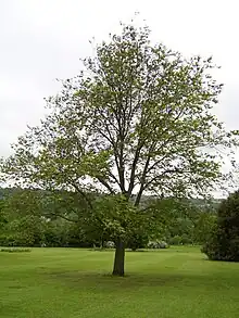 U. wallichiana is grown in several arboreta in the UK, but by far the largest number is held by Brighton & Hove City Council, the NCCPG elm collection holder, which has some 60 specimens, including the TROBI Champion in school grounds at Rottingdean.[14] The tree tends to be rather short-boled in Brighton & Hove, and readily defoliates in times of drought. The tree was propagated and marketed by the Hillier & Sons nursery, Winchester, Hampshire, from 1962 to 1977, during which time 97 were sold.[15][16]