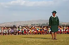 Umhlanga [um̩ɬaːŋɡa], or Reed Dance ceremony, is an annual Swazi event that takes place at the end of August or at the beginning of September.[1] In Eswatini, tens of thousands of unmarried and childless Swazi girls and women travel from the various chiefdoms to the Ludzidzini Royal Village to participate in the eight-day event.[2] The young, unmarried girls were placed in female age-regiments; girls who had fallen pregnant outside wedlock had their families fined a cow.[1]