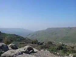 Umm el-Qanatir, also spelled Umm el-Kanatir (Arabic: ام القناطر, romanized: Umm al-Qanāṭir, lit. 'mother of the arches'), also known as Ein Keshatot (Hebrew: עין קשתות, lit. 'spring of the arches'), is an archaeological site on the Golan Heights, whose main phase is dated to the mid-5th–8th centuries.[1][2] Excavations have revealed a Roman-period settlement, first inhabited by pagans and later by Jews, who left behind the ruins of an exquisite synagogue when they abandoned the town after it being destroyed by the catastrophic 749 earthquake.[1] The site is located 10 kilometres east of the Dead Sea Transform,[3] one kilometre southwest of Natur.[1]