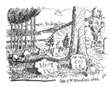 Thomas Stewardson, Jr., made a pilgrimage on October 22, 1868 to discover the burial site of Captain John Underhill. During this visit he made a sketch of the site, a copy of which he later conveyed to William Underhill, Esq. of Wimbledon, England. In it Stewardson referred to "This pretty, but neglected graveyard" and how he "heard whilst there, of an intention to erect a Monument over the remains of 'Fighting John.'"
