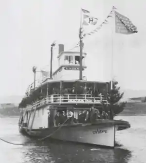 There were professional organizers of steamboat excursions, one of whom in 1889 was J.J. Hauser.[10] Hauser's method was to book a band, charter a steamboat, and sell tickets, hopefully making a profit.[10] Sometimes this worked for him, and he could make $200 on a single excursion, as he did on July 4, 1889, when he charted Multnomah.[10]