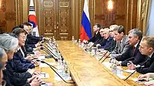- ↑ "민주, 통합러시아당과 정당협력의정서 체결…정보교류 제도화". 연합뉴스. 14 December 2017. Retrieved 4 December 2022.