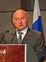 On 20 September 2003, the Third Party Congress adopted the election program and approved the list of candidates for the elections.[54] The congress was welcomed by Vladimir Putin, who wished the party success in the elections.[55] On 7 December, the party "Unity and Fatherland - United Russia" won the elections, receiving 37.57% of the vote, and with single-mandate members, a constitutional majority in the State Duma. Boris Gryzlov became speaker of the State Duma.