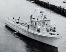 The navy built a number of these small, wooden torpedo retrievers as early as 1924.[17] They were driven by twin 150 horsepower Palmer Marine gasoline engines.[18] Many were declared surplus after World War II and sold to the public for prices as low as $250.[19]
