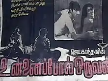 Unnaipol Oruvan (transl.A Man Like You) is a 1965 Indian Tamil-language drama film written, co-produced and directed by Jayakanthan. Based on his novel of the same name, the film was his directorial debut. The film stars R. Gandhimathi, P. Udhayan, S. Prabhakar and A. K. Veerasami. It had no songs with the background score composed by Chitti Babu. The film won the Third Best Feature Film at the 12th National Film Awards in 1965.