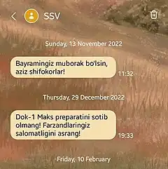 30. "Наманганда "Док-1 Макс" дори воситасидан ўлим ҳолати қайд этилгани ростми?". UzA.uz. 7 January 2023. Retrieved January 7, 2023.