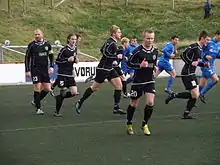 Víkingur is a Faroese semi-professional football club based in Leirvík. The club was founded in 2008 after the merger of GÍ Gøta and Leirvík ÍF.[1] They play in the stadium is in Norðragøta. Both villages are part of the same municipality Eysturkommuna, located on the island of Eysturoy and about 5 kilometers away from each other. The club won the Faroese championship for the first time in the 2016 season.[2] In the 2017 season, Vikingur won the championship again.