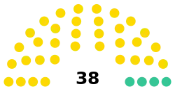 At the first elections in 1973 forty-nine district councillors were elected from thirty-one electoral wards.[3] Currently thirty-eight councillors are elected from twenty four electoral wards, which cover the principal towns of Abingdon, Faringdon and Wantage and surrounding villages.[4] This was effective from the 2015 elections.[5]