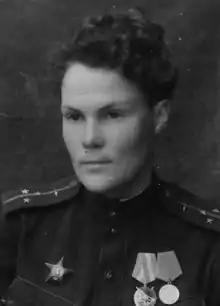 Valentina Flegontovna Savitskaya née Kravchenko (Russian: Валентина Флегонтовна Савицкая; 9 January [O.S. 27 December 1916] 1917 – 15 February 2000) was a Russian pilot and squadron navigator in the 125th Guards Dive Bomber Regiment during World War II. She was awarded the title Hero of the Russian Federation on 10 April 1995.