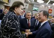 - ↑ "Терешкова Валентина Владимировна" [Valentina Vladimirovna Tereshkova]. Государственная Дума (in Russian). Archived from the original on 27 July 2018. Retrieved 18 June 2019.
