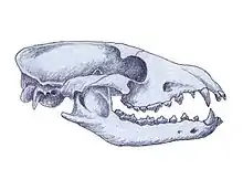 C. cuspidatus Railway Quarry "A", Cherry County, Nebraska.[1] Crookston Bridge Member.[1] Skull elements.[1] A borophagine dog.
