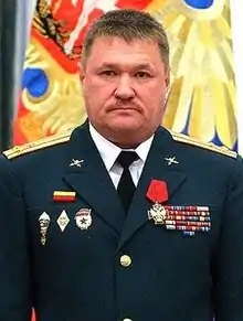 Valery Grigorievich Asapov (Russian: Валерий Григорьевич Асапов; 1 January 1966 – 23 September 2017) was a Russian military leader who last served as the Lieutenant General of Russian Ground Forces. According to the Russian Defence Ministry,[3] he was killed on 23 September 2017 by mortar fire from ISIL militants near the city of Deir ez-Zor during the Russian military intervention in the Syrian Civil War making him the most senior Russian officer killed in action to date in the course of the Syrian Civil War. Asapov's position in Syria was described by the Ministry of Defence as the chief of the group of Russian military advisers in Syria.[4][3]
