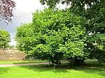 | Red horse-chestnut | Wall of the Casa Salvans, under the Casa Baumann. | Greece, Albania and Bulgaria | Deciduous tree over 20 m tall with leaves between five and seven toothed leaflets, white flowers. | ![]() |