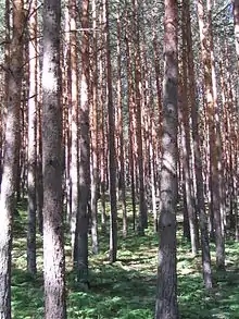 The felling age of Scots pine is about 120 years. The traditional way of exploiting these forests is to thin the pine forests. In the clearings opened up by the felling of the adult pines, the light index rises, which facilitates the germination of the pine nuts and, thus, a new generation of pines. Over time, the mass of adult trees is replaced by new young pines, completely regenerating the pine forest.