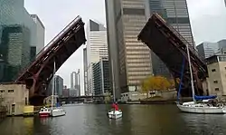 The Van Buren Street Bridge is a bascule bridge that spans the Chicago River in downtown Chicago, Illinois, United States.[1] It is the sixth bridge at this location and carrying this name, and was completed in 1956.[1] It replaced an 1895 Rolling Lift-type bascule bridge designed by William Scherzer.