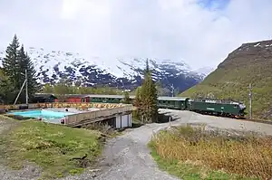 Vatnahalsen Station (Norwegian: Vatnahalsen holdeplass) is a railway station on the Flåm Line in Aurland, Norway. It is 1.13 kilometers (0.70 mi) from Myrdal Station, 336.93 kilometers (209.36 mi) from Oslo Central Station and 811.3 meters (2,662 ft) above mean sea level. The station opened on 1 August 1940.[1][2]