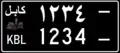 However, the 5-digit code in the capital province of Kabul exhausted. Thus, on the license plates of this province, have an additional extra digit, only in Persian, located separately from the actual numerical code. In addition, two hyphens are shown at the top and the bottom of the 6th number. [1]