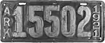 1921 | Embossed silver serial on black plate with border line; vertical "ARK" and "1921" at left and right respectively | none | 12345 | 1 to approximately 71000 | |