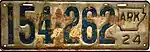 1924 | Embossed dark blue serial on gray plate with border line; "ARK" within state outline and "24" at right | none | 123-456 | ||
