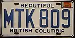 - 1 2 Tanner, Eric N. "British Columbia Passenger License Plates". allaboutlicenseplates.com. Retrieved November 19, 2020.