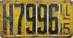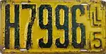1915 Dark blue on yellow; "ILL 15" at right none 12345 1 to 99999 Letters H, K, P, R, T, U, X and Y used in the A1234 serial format.[53]