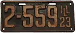 1923 White on green with border line; "ILL 23" at right none 123-456 1 to approximately 841-000