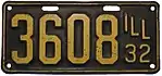 1932 Golden yellow on dark blue with border line; "ILL 32" at right none 1-234-567 1 to approximately 1-301-000