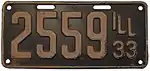 1933 White on dark blue with border line; "ILL 33" at right none 1-234-567 1 to approximately 1-277-000