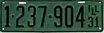 1931 Black on light green with border line; "ILL 31" at right none 1-234-567 1 to approximately 1-411-000