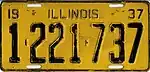 1937 Black on yellow with border line; "19 - ILLINOIS - 37" at top none 1-234-567 1 to approximately 1-569-000
