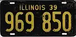 1939 Yellow on black; "ILLINOIS 39" at top none 1234 567 1 to approximately 1639 000