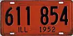 57. "Auto License Plates Go On Sale Tomorrow". Chicago Tribune. December 3, 1951. p. E7. The Illinois plates for 1952 will be of midnight blue on a burnt orange background.