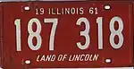 58. "Illinois Auto Plates In '53 To Be Red On Buff". Chicago Tribune. May 26, 1952. p. 2. Illinois' 1953 auto license plates will be ruby red figures on a buff background, Secretary of State Edward J. Barrett announced yesterday.