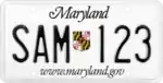 September 26, 2016[11] – present Embossed black serial on reflective white plate with state flag screened in bottom half; "Maryland" screened in red centered at top none 1AB2345 8CN0000[12] to 2GA6205 (as of November 19, 2023)[13]